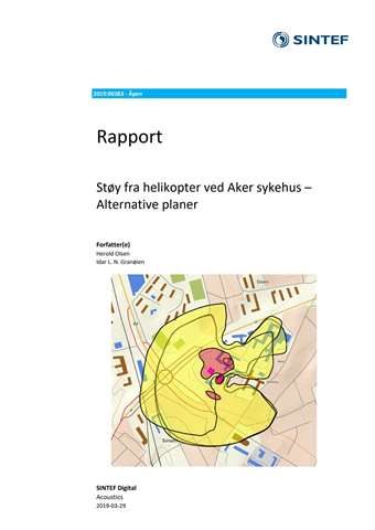 Det er utarbeidet støysonekart i henhold til Klima- og miljødepartementets retningslinje T-1442/2016 for helikoptertrafikk på tre alternative lokaliseringer av landingsplass på planlagt nytt Aker sykehus i Oslo. Variasjon mellom alternativene gjelder landingsplassens plassering og høyde, utforming...