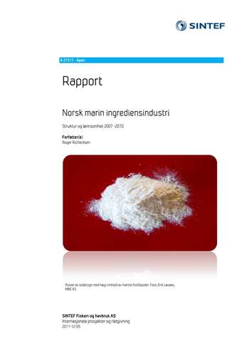 Foreliggende rapport gir en sammendrag av struktur og økonomisk utvikling for norsk marin ingrediensindustri i perioden 2007 – 2010. Total omsetning 2010 i denne industrien samlet var på nesten 4,8 Milliarder NOK. Det er opp fra om lag 4,3 milliarder kroner året før. Samlet er det rundt...