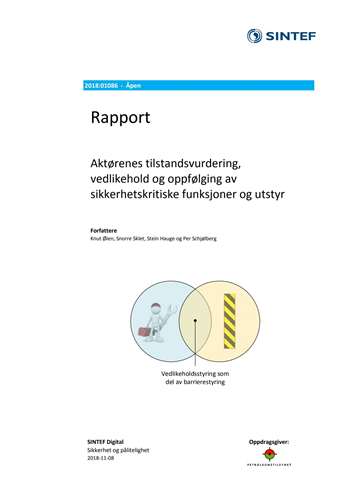 Denne forstudierapporten sammenstiller informasjon om status og utfordringer med hensyn til tilstand og vedlikehold av sikkerhetskritisk utstyr i petroleumsvirksomheten. Dette dekker grensesnittet mellom vedlikeholdsstyring og barrierestyring. Sammenstillingen baserer seg på en gjennomgang av...
