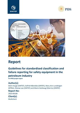This document provides guidance on how to report and classify failure and maintenance data for safety equipment, as a basis for improved follow-up and future automation. Standardised equipment grouping, equipment properties and simplified failure taxonomies are suggested. Focus is on safety instrumented...