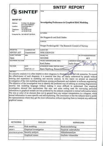In a security analysis it is often helpful to draw diagrams to illustrate threat and risk scenarios. To ensure the effectiveness of such diagrams, it is essential that they are easily understood by people without training and experience in modeling and security analysis. In this report we present an...