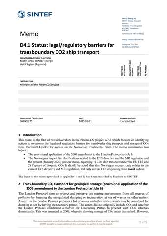 A description is provided of the legal/regulatory situation, as of early December 2021, for CO2 transport from Sweden/Preem AB to Norway/Northern Lights. CO2 transport from Sweden to Norway for the purpose of geological storage under the seabed is since 2019 legal, thanks to the provisional...